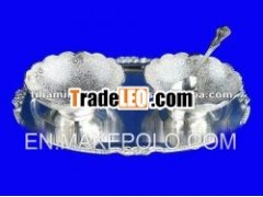 Silver plated embossed condimentset. Useful for snacks & Nut serving. A perfect corporategift.